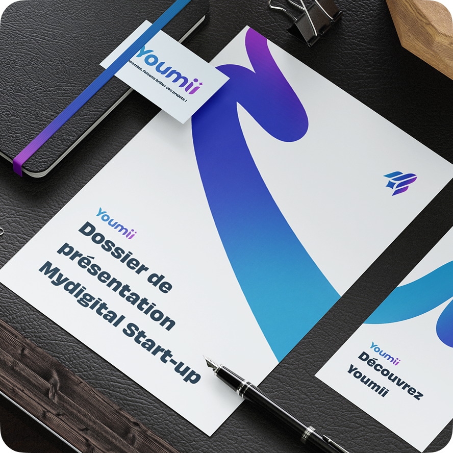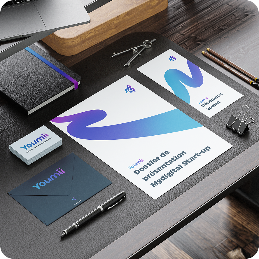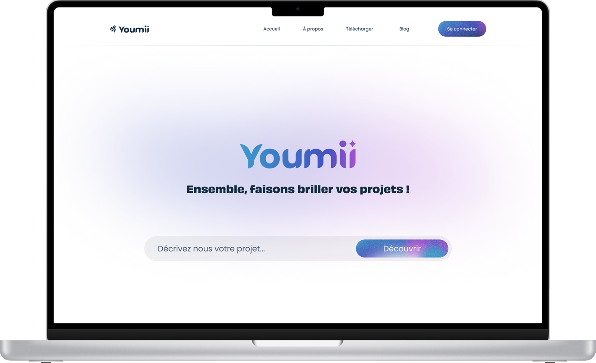 The blue-purple gradient expresses everything we are: trust, creativity, and an uplifting energy. These colors perfectly reflect Youmii’s spirit.